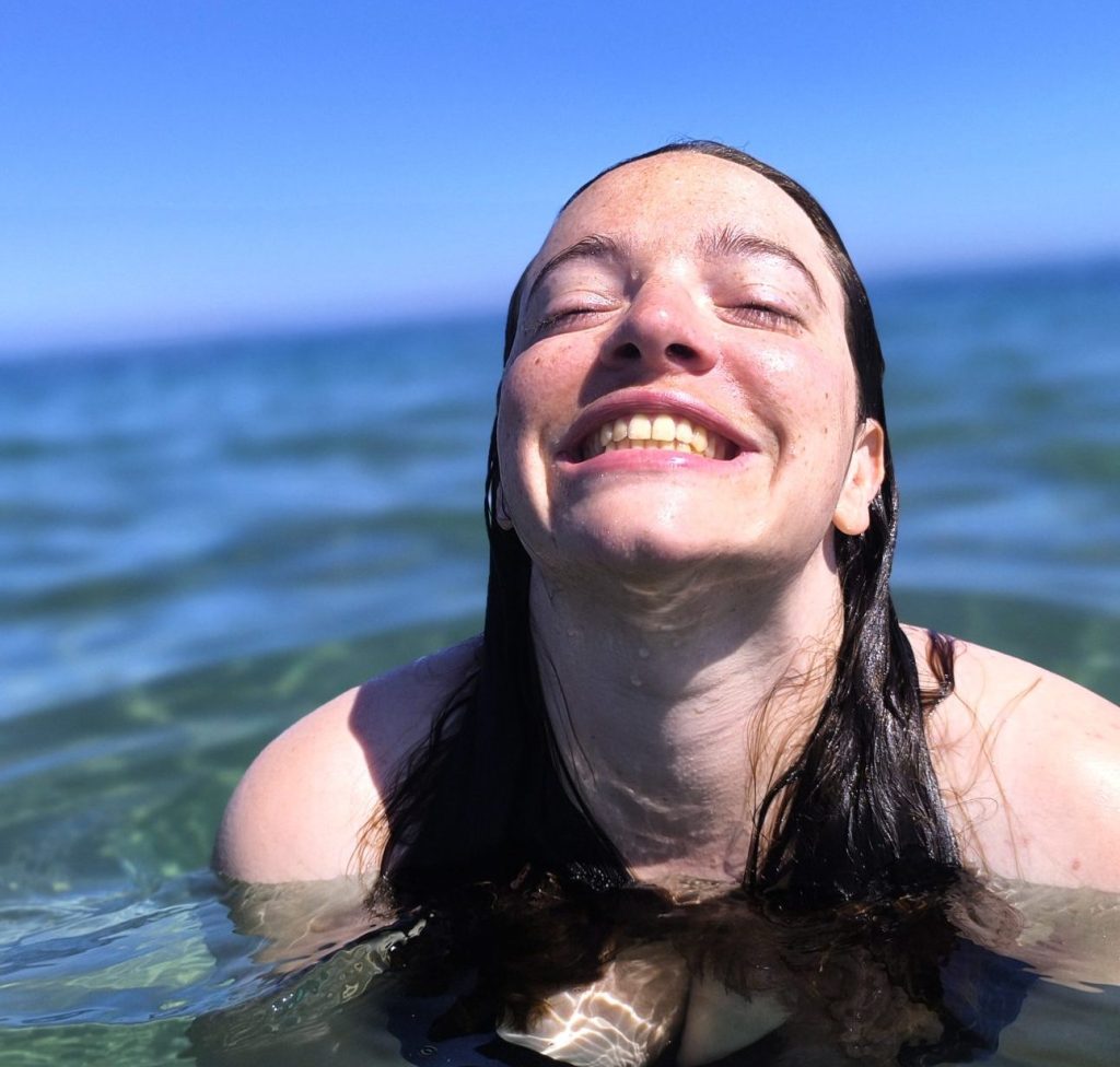 L’eau était encore un peu chargée d’algues à cause du vent de la veille, ce qui nous a légèrement refroidies pour la baignade. Nous y sommes quand même allées, mais sans trop insister. L’essentiel était ailleurs : le soleil sur la peau, les discussions sans filtre, les rires faciles.