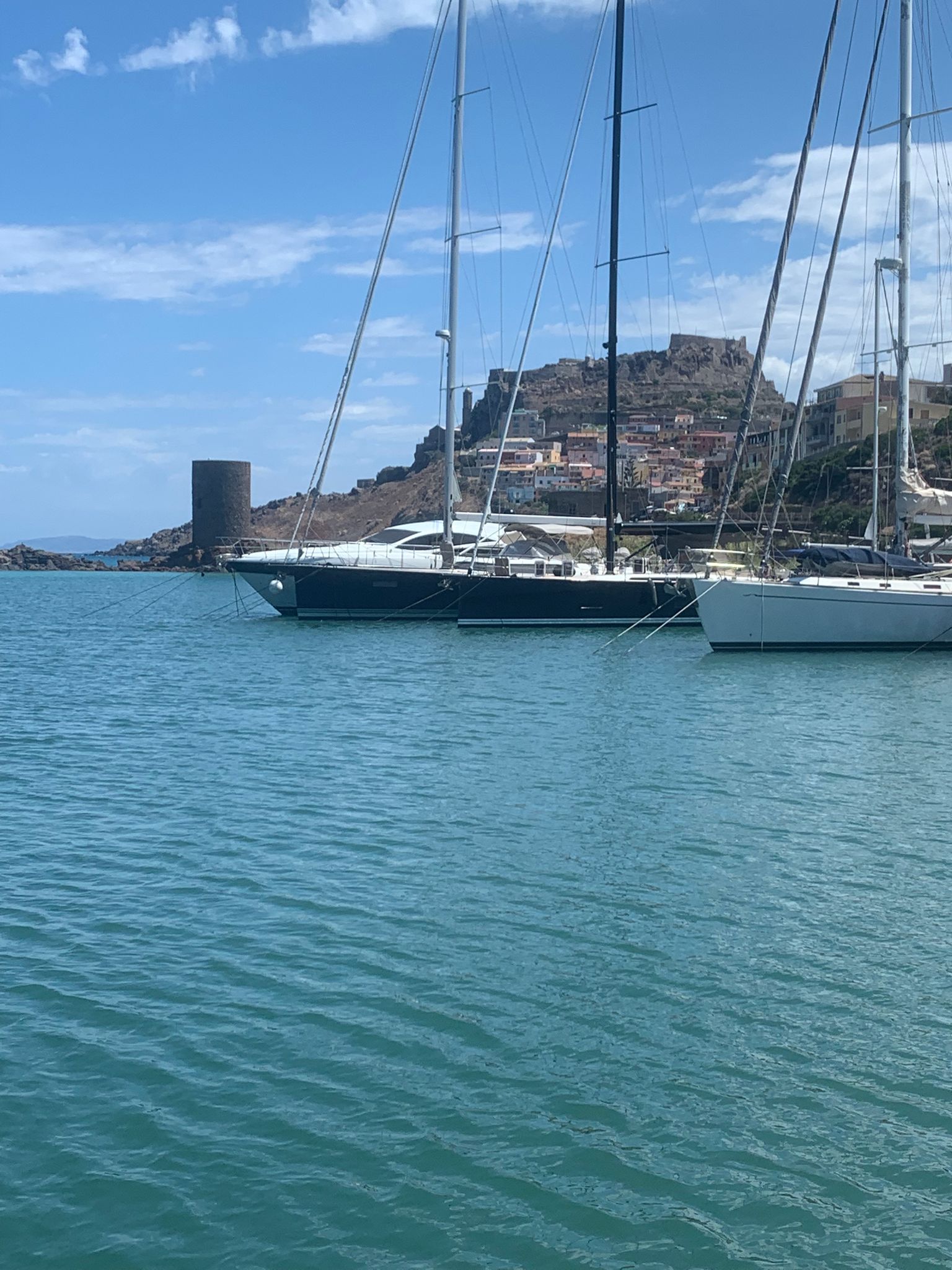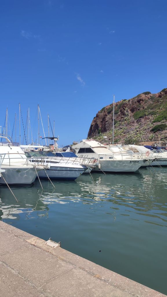 Nous avons ensuite fait un rapide tour de Porto Torres, une ville assez industrielle, sans grand charme particulier, mais intéressante à découvrir pour comprendre l’ambiance locale. Le vent, lui, ne nous a pas quittées de la journée. Il soufflait si fort que lorsque nous sommes descendues voir la plage de la résidence, nous étions en pull. Oui, en pull, un 28 juillet en Sardaigne. La mer était magnifique, mais l’atmosphère presque sauvage, indomptable.