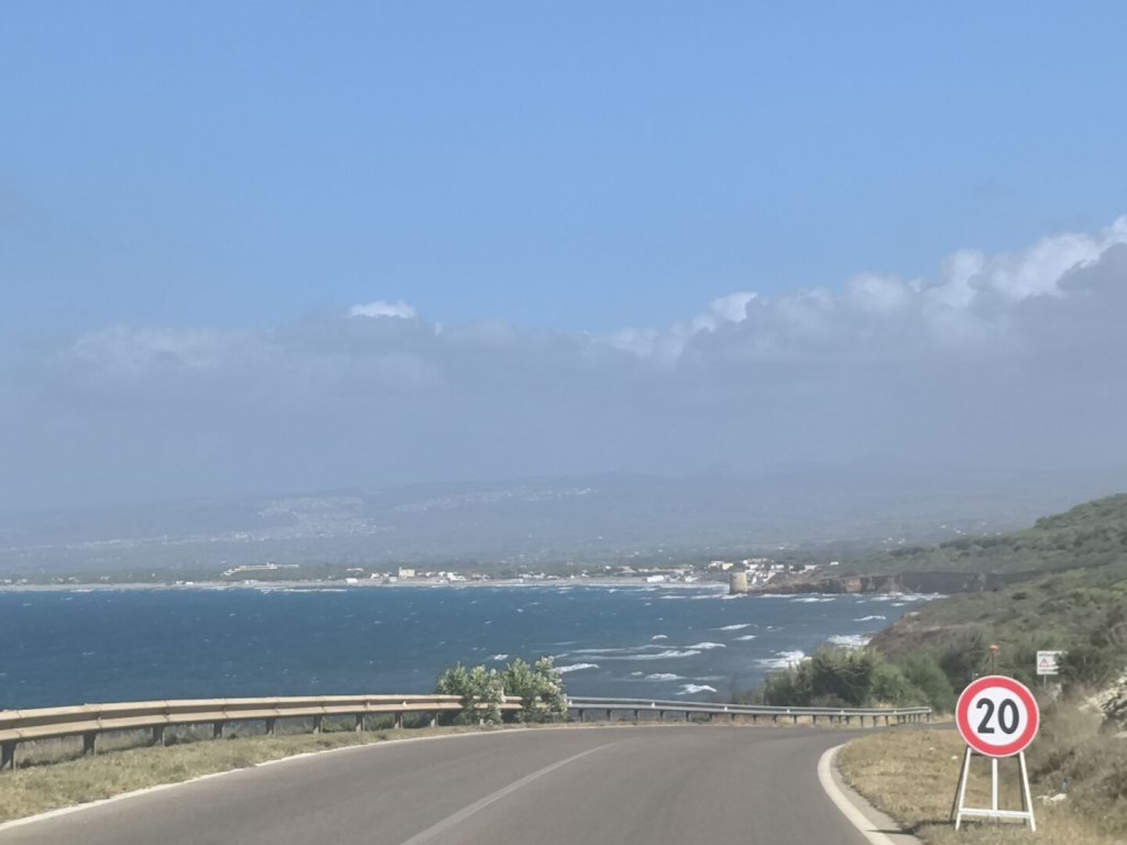 À l’approche de l’île, la vue était magnifique, avec cette mer turquoise contrastant avec une terre plus brute et aride. L’atterrissage à Alghero, en revanche, a été particulièrement brutal à cause d’un vent très fort. Une fois sur le tarmac, ce vent n’avait rien d’agréable et nous a rappelé, dès les premières minutes, que la Sardaigne pouvait aussi avoir du caractère.