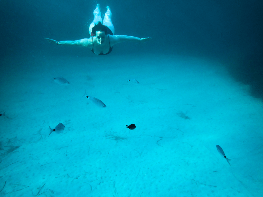 Le bateau a quitté le port et nous a conduites vers un spot magnifique. L’eau était translucide. Nous avons plongé, nagé, ri. Et c’est là que je suis redevenue officiellement la photographe obsessionnelle du groupe.