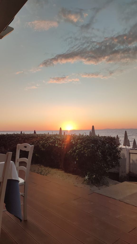 En milieu d’après-midi, nous avons décidé de rejoindre la plage au Altamarea, au-dessus de Sorso. Nous avons loué des transats et nous nous sommes installées face à la mer. Les filles ont commandé des cafés, j’ai opté pour un Perrier, et nous avons simplement… pris le temps.