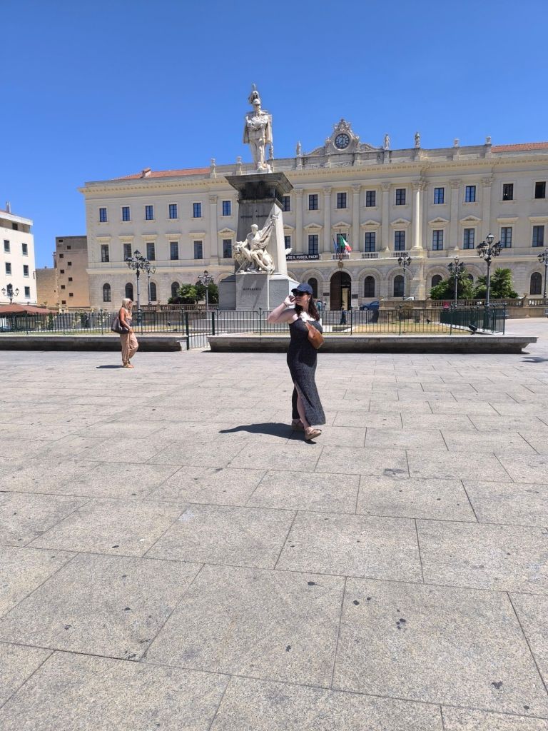 Nous avons flâné dans les ruelles, visité des églises, marché longtemps sous le soleil. Nous sommes passées par la fontaine de Rosello, emblématique de la ville, avant de nous poser sur la place principale pour déjeuner au Caffè Vittorio Emanuele II. L’endroit était typiquement italien, avec ses grandes tables, ses serveurs efficaces et son ambiance tranquille. La chaleur ralentissait tout, y compris nous.